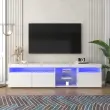 Bela moderna TV omarica, svetel panel, spremenljiva LED osvetlitev, dnevna in jedilnica 180 cm