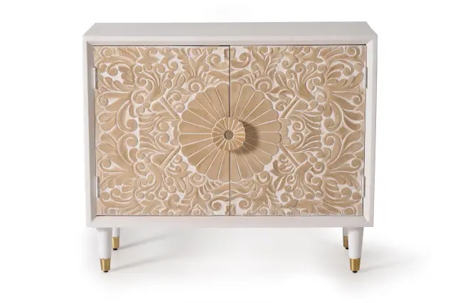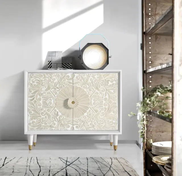 Bela omarica iz mangovega lesa z zlatimi detajli