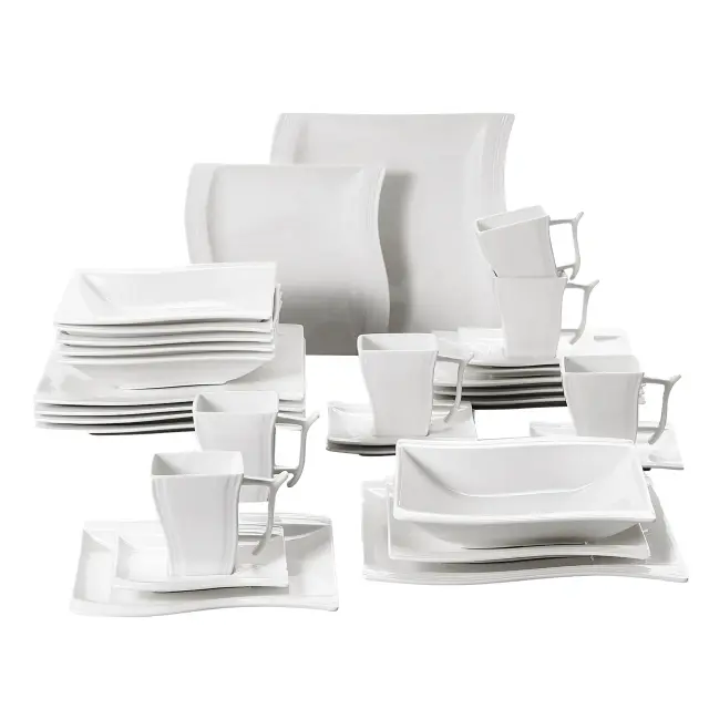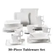 Bela porcelanasta jedilna posoda, 30-delni in 60-delni opciji, eleganten dizajn, primerna za mikrovalovno pečico, 30-delni