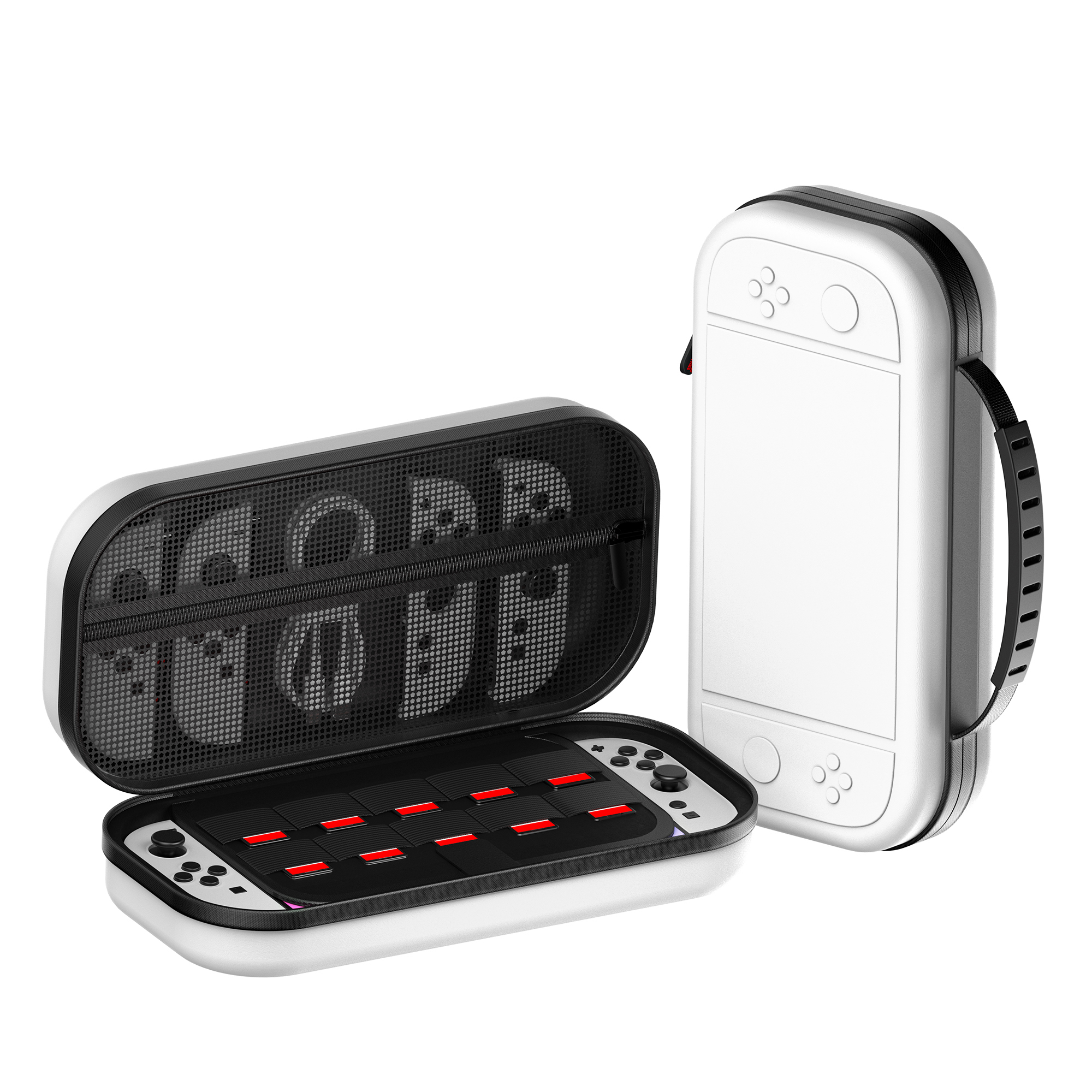 Veliko prostora za shranjevanje: Ta torbica je zasnovana s prostorno notranjostjo in zagotavlja veliko prostora za shranjevanje vaše konzole Switch 2, Joy-Conov, kartuš z igrami in drugih bistvenih dodatkov. Namenski predelki in elastični trakovi ohranjajo vse organizirano in varno, preprečujejo premikanje predmetov med prevozom. Ni vam več treba skrbeti za zapletene kable ali založene dodatke – ta torbica ohranja vse lepo na svojem mestu, pripravljeno za vašo naslednjo igralno sejo. Uživajte v udobju, ko imate vse svoje igralne potrebščine na enem varnem mestu.