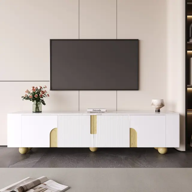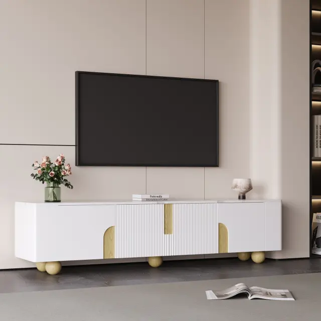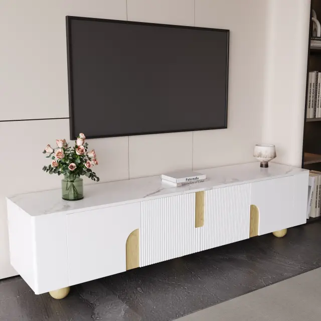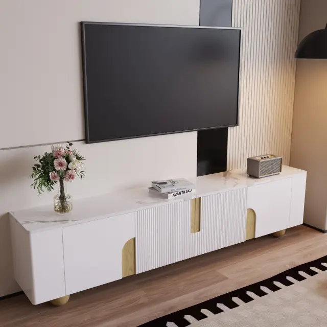 Bela TV omarica 180 cm s 4 vrati in videzom marmorja