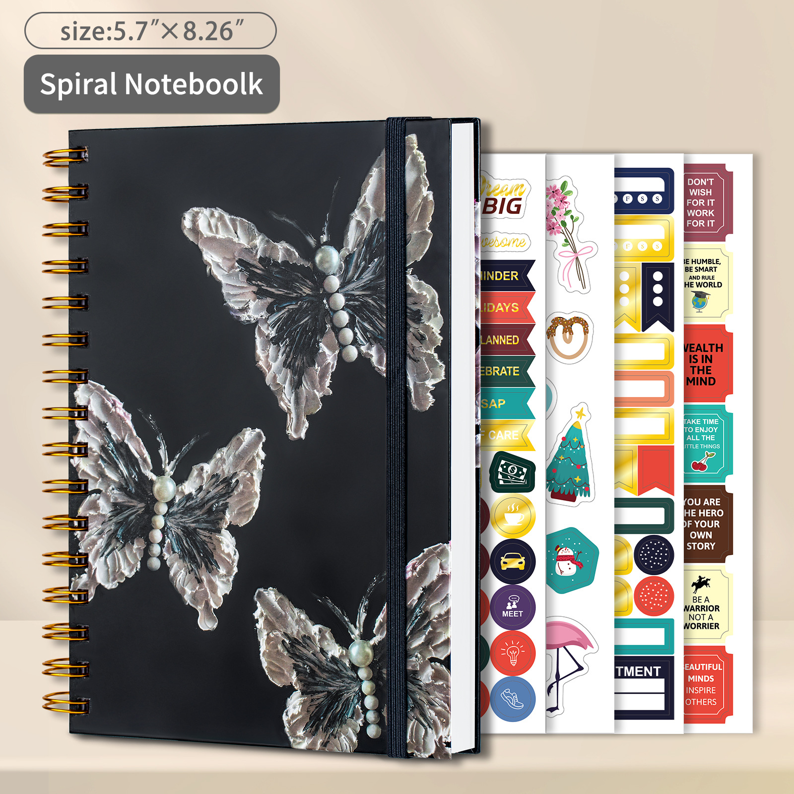 Vsestranski in organiziran: Ta beležnica je kot nalašč za različne namene, od vodenja dnevnika in beleženja do skiciranja in načrtovanja. Priložene nalepke za načrtovanje iz zlate folije dodajo pridih elegance in vam pomagajo ostati organizirani. Uporabite jih za označevanje pomembnih datumov, opravil ali idej.