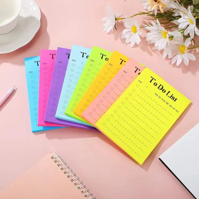 Močna oprijemljivost: samolepilni lističi so zasnovani tako, da se trdno oprimejo različnih površin, kar zagotavlja, da vaši seznami ostanejo na mestu. Z lahkoto jih je mogoče odstraniti brez ostankov.