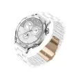 Eleganten keramični dizajn: Izboljšajte svojo pametno uro s tem osupljivim belim keramičnim paščkom. Kombinacija smole in nerjavečega jekla zagotavlja vrhunski videz in občutek, zaradi česar je popoln dodatek za vsako priložnost. Bela barva doda pridih prefinjenosti in se brezhibno dopolnjuje z različnimi številčnicami ure. Ta pašček je združljiv s Huawei GT5 Pro, GT5, GT4, GT3, GT Runner, Watch 4 Pro, GT2 Pro, GT2, Watch GT, Honor Watch Magic in serijo Samsung Galaxy Watch, kar zagotavlja elegantno nadgradnjo vaše naprave. Keramični zaključek je odporen na praske in ohranja svoj prvotni videz skozi čas.