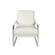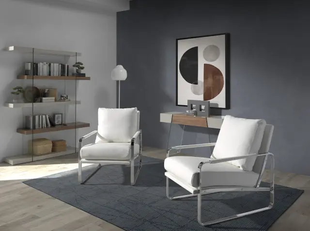 Beli usnjeni oblazinjeni fotelj model 5026 Angel Cerdá S.L. Fotelj z belim usnjenim oblazinjenjem, s sedežem in naslonom iz poliuretanske pene 25 kg/m3. Dodatno udobje zagotavlja hrbtna blazina, oblazinjena z enakim usnjem in napolnjena z mehko peno gostote 20 kg/m3. Struktura iz kromiranega nerjavečega jekla z 22 mikroni in nasloni za roke z ujemajočimi se oblazinjenimi aplikacijami bo vašemu domu dodala tisti pridih avantgardne elegance, ki ga iščete. Ta fotelj s sodobnim dizajnom Angel Cerdá združuje edinstven slog in osebnost znamke ter največje udobje in stabilnost zaradi mehkega oblazinjenja in izvirne strukture nog. Oblikovalski kos, ki ga ne boste želeli spregledati v svoji dnevni sobi ali bralnem kotičku. - STIL: Ta belo usnje oblazinjen fotelj s sodobnim dizajnom bo poskrbel za drugačen in eleganten dotik, ki ga iščete v svojem domu in je zvest najnovejšim trendom na področju dekoracije. - Vsestranski in funkcionalni dizajn omogoča, da se prilega vsaki vrsti dnevne sobe, jedilnice, bralnega kotička ali spalnice in postane glavni protagonist prostora. - KAKOVOST: Vsi naši fotelji so izdelani iz najkakovostnejših materialov, kar je zagotovilo za trajno in funkcionalno pohištvo. - DEKORACIJA: Zaradi minimalistične in elegantne zasnove ter kombinacije belega usnja in kromiranega nerjavnega jekla boste dobili drugačen in prepoznaven pridih, ki ga iščete za svojo dnevno sobo. - UDOBJE: Velikost sedeža, napolnjenega s poliuretansko peno 25 kg/m3, in naslona, napolnjenega s poliuretansko peno 20 kg/m3, vam bosta omogočila največje udobje, ne da bi pri tem zapustili najvišje trende
