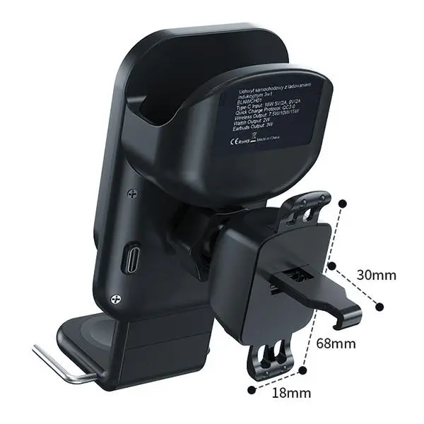 BELINE UCHWYT SAMOCHODOWY Z ŁADOWANIEM INDUKCYJNYM BLNWCH01 3W1 SMARTPHONE/IWATCH/AIRPODS