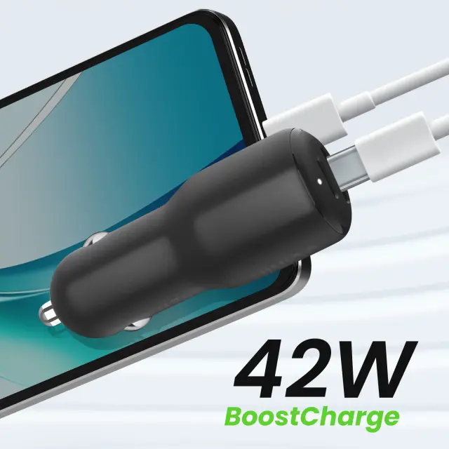 Avtomobilski polnilnik BoostCharge 42W zagotavlja hitro in varno polnjenje dveh naprav hkrati. 30W vrata USB-C in 12W vrata USB za optimalno zmogljivost na poti. Tehnologija Power Delivery in PPS za prilagajanje napajanja napravi. Kompaktna, okolju prijazna zasnova iz reciklirane plastike za enostavno namestitev v katero koli vozilo.
