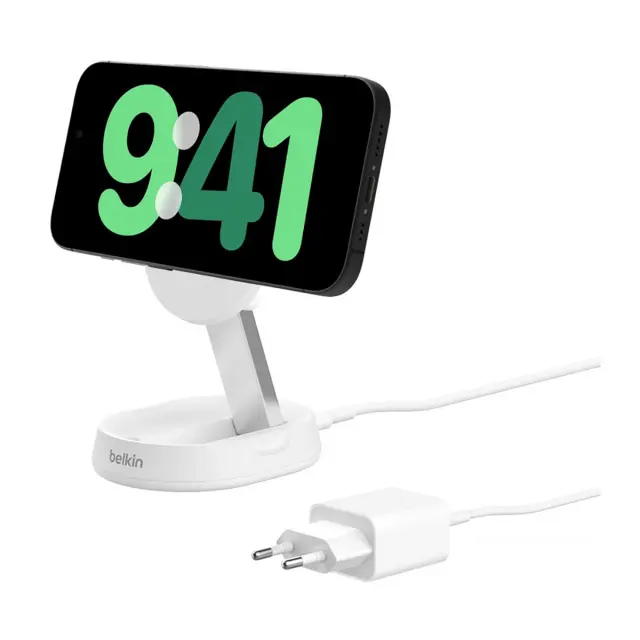 Belkin, MagSafe Qi2 15W 2-v-1 indukcijska izvlečna polnilna postaja za iPhone, Bela