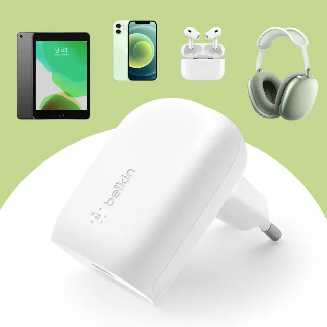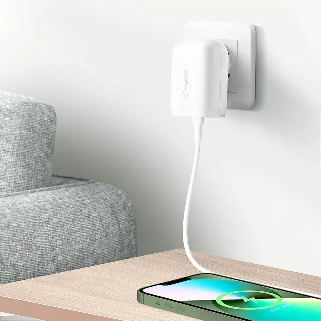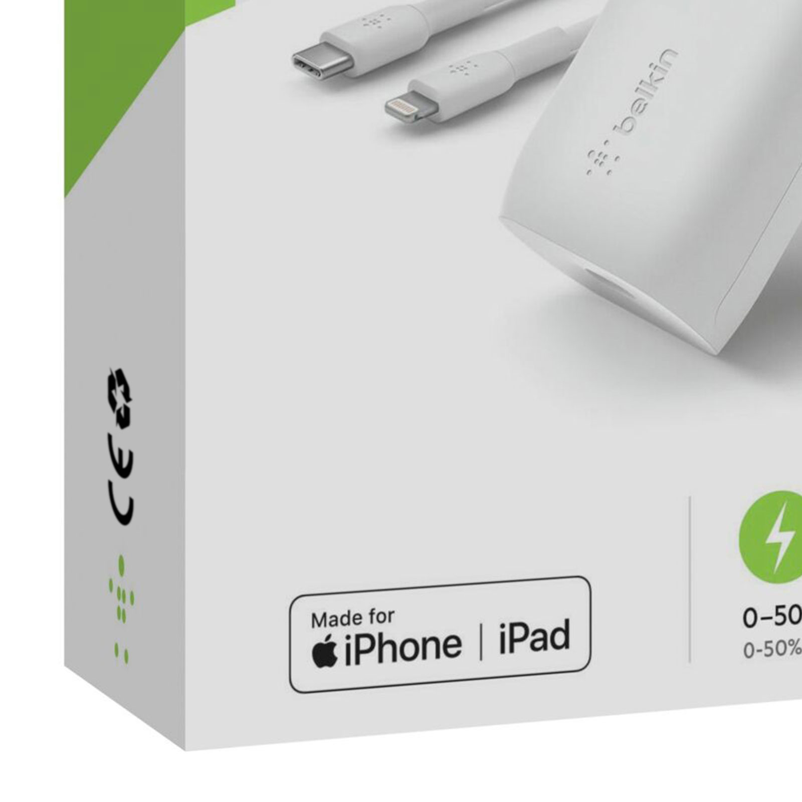 Belkin, Omrežni polnilec Hitro polnjenje USB C 30W s kablom Lightning, Bela