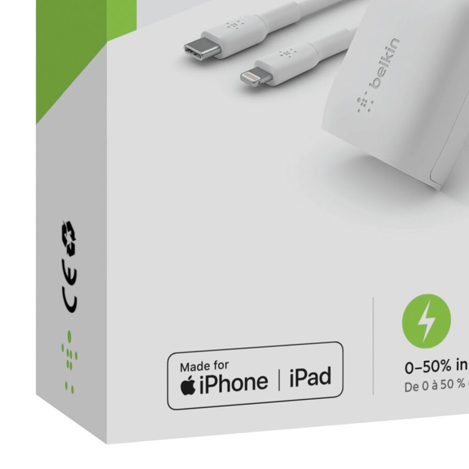 Belkin, Omrežni polnilec USB C Power Delivery s kablom za iPhone, Bela