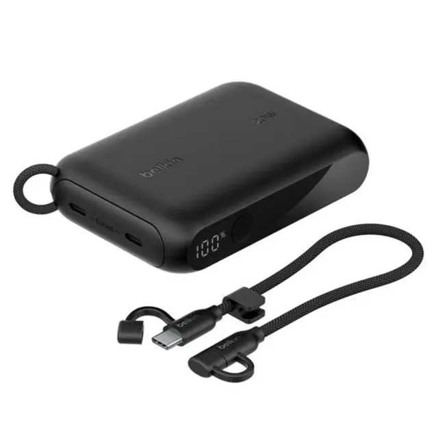 Ta zunanja baterija BoostCharge s tehnologijo Power Delivery zagotavlja do 20 W za hitro polnjenje združljivih naprav.. Dva priključka USB-C omogočata polnjenje dveh naprav hkrati s skupno močjo 15 W, kar vam prihrani čas na poti.. Digitalni zaslon jasno prikazuje preostalo raven energije za natančno spremljanje polnjenja. Baterija je skladna z zahtevami TSA, zato jo zlahka spravite v torbo in jo lahko vzamete s seboj, kamor koli greste, tudi v kabino letala..