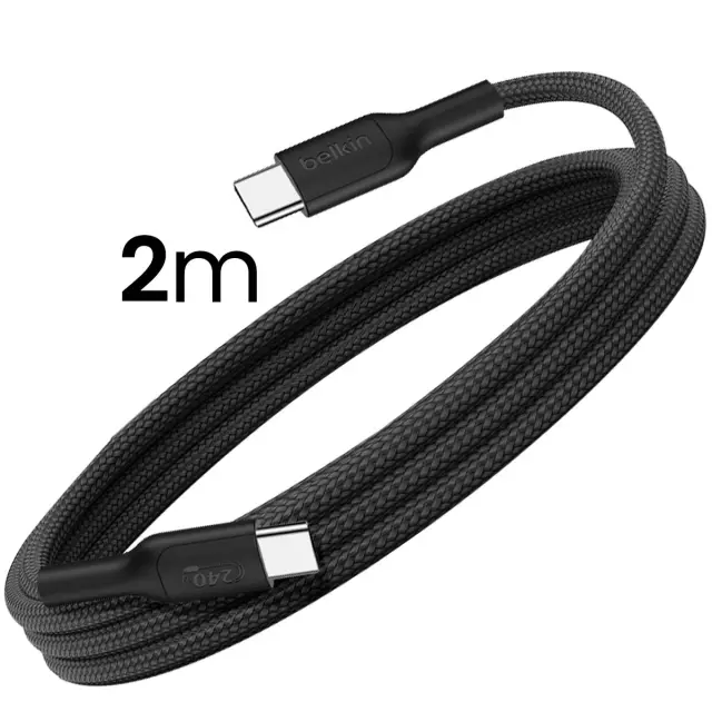Z izjemno hitrim polnjenjem do 240 W lahko v rekordnem času napolnite pametni telefon, tablični računalnik ali računalnik in se takoj lotite dela. Dolžina 2 metra, idealna za polnjenje iz udobja postelje, kavča ali mize, brez omejitev gibanja. Visoko trdnostni pleteni kabel, zasnovan za več kot 30000 upogibov in 10000 priključkov - zanesljiva dolgoročna naložba. Inteligentna tehnologija, ki samodejno prilagaja moč priključeni napravi za hitro in varno polnjenje ob vsaki uporabi.