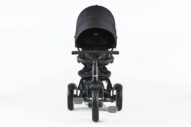 Prva vožnja. Sedež z naklonom omogoča udobno namestitev in tudi počivanje med vožnjo. Sedež lahko rotira za 180 stopinj, kar pomeni, da je lahko otrok obrnjen tako, da gleda vas, kar omogoča boljši nadzor v začetni fazi in je prvotno tricikl uporaben kot otroški voziček. Kasneje lahko otrok gleda v smeri vožnje in tako že opazuje okolico.Ta funkcija in dodatne opore za nogice so kot nalašč za začetek uporabe tricikla z dojenčkom.