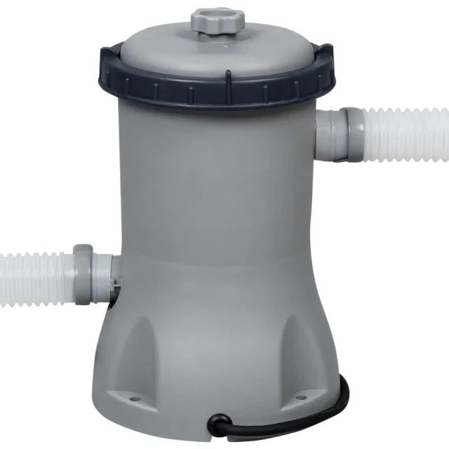 Električna filtrirna črpalka je del cirkulacijskega sistema za ohranjanje čiste vode. Protimikrobna filtrirna kartuša pomaga preprečevati rast alg, plesni in drugih mikrobnih bakterij v bazenu. Razpršilnik ChemConnect vzdržuje in zagotavlja čisto in zdravo vodo v bazenu. Lestev za bazen vam bo pomagala pri varnem vstopu v bazen in izstopu iz njega. Stopnice na eni strani lestve je mogoče premakniti na vrh, kar preprečuje, da bi majhni otroci splezali na lestev in vstopili v bazen. Bazen se preprosto zloži za shranjevanje in prevoz, ko ni v uporabi. Priložena prevleka za bazen lahko prepreči rast alg in zmanjša stroške zamenjave kemikalij.