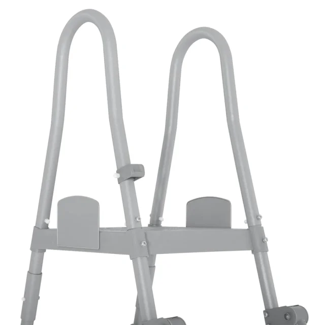 Okvir lestve za bazen je izdelan iz močnega jekla ter ima maksimalno nosilnost 150 kg. Štiri nedrseče prečke na vsaki strani so izdelane iz trpežne plastike. Stopnice na eni strani lestve lahko nastavite, da jih majhni otroci ne morejo uporabiti za dostop do bazena.