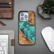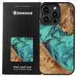 BEWOOD UNIKATNI OVITEK IZ LES IN SMOLE ZA IPHONE 15 PRO OVITEK TURKIZNA IN ČRNA