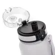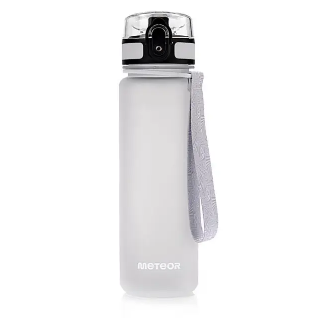 Praktični bidon znamke meteor, ki jo lahko vzamete s seboj na vadbo, fitnes ali kolesarski izlet, šolo ali kolesarjenje. Bidon je prozoren z mat zaključkom in nedrsečo površino. Ne omejuje pretoka pijače. Primeren je za tople in hladne napitke. Opremljen je z merilno skodelico in cedilom za ločevanje npr. sadja ali ledenih kock. Ima pravo velikost za večino nosilcev za avtomobile in kolesa. Je primerne velikosti za otroke. Bidon ima udoben trak za nošenje. Enostavno in hitro se odpre z enim samim gumbom. Zahvaljujoč posebni ključavnici pokrova vam ni treba skrbeti, da bi pijačo nenamerno polili.