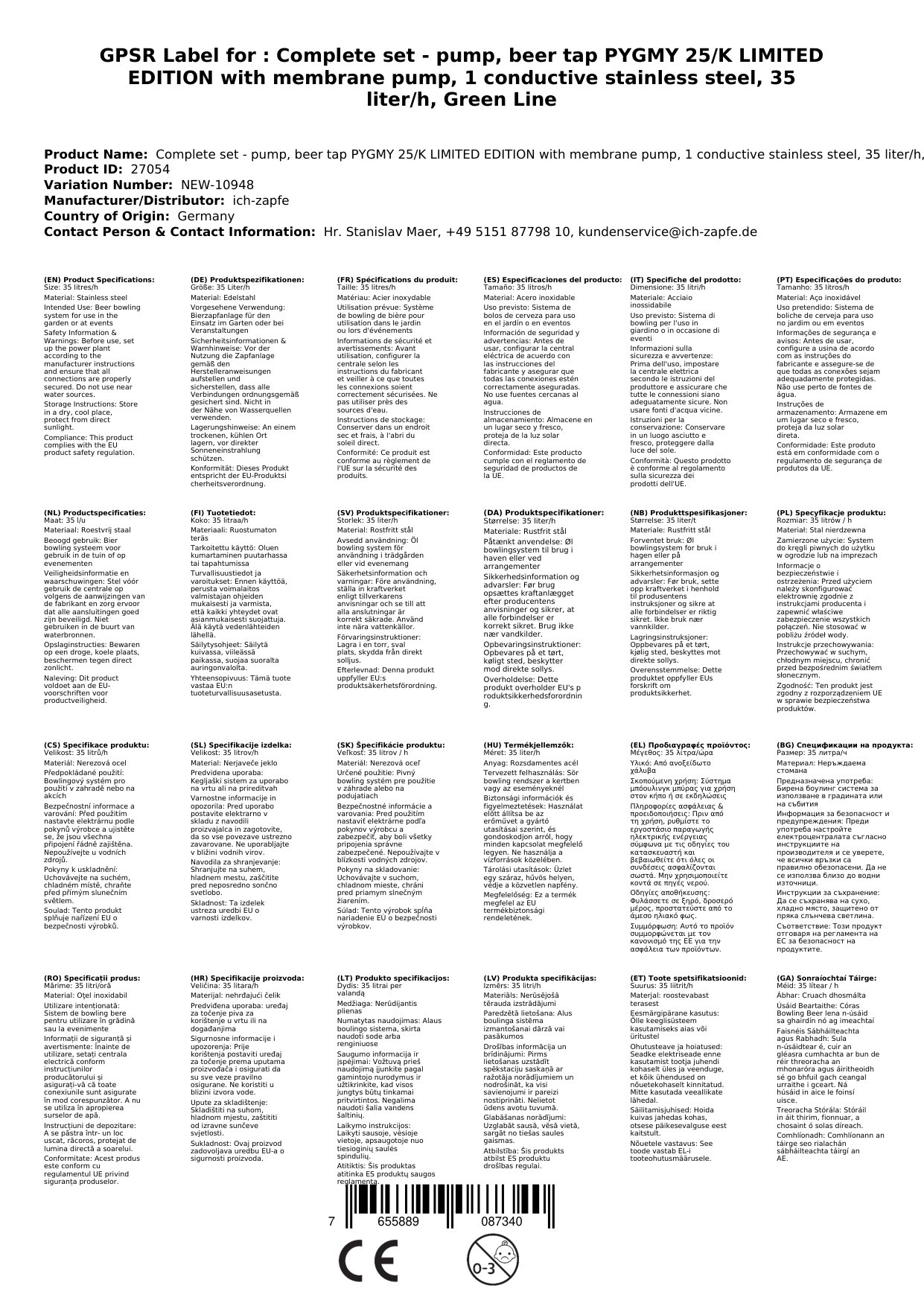 Kompletni set - Naprava za črpanje piva PYGMY 25/K LIMITED EDITION z membransko črpalko, enokanalni suhi hlajenje iz nerjavečega jekla, 35 litrov/h, Green Line.