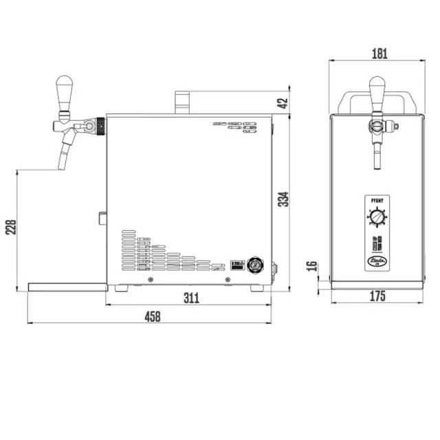 Zapravilna naprava PYGMY 25 LE je sodobna rešitev za črpanje piva, ki združuje učinkovitost, okolju prijaznost in enostavnost uporabe. Ta enokanalni suhi hlajevalnik iz nerjavečega jekla ponuja zmogljivost 35 litrov na uro, kar je idealno za manjše lokacije kot so pivski vrtovi, bar in šotori na festivalih.