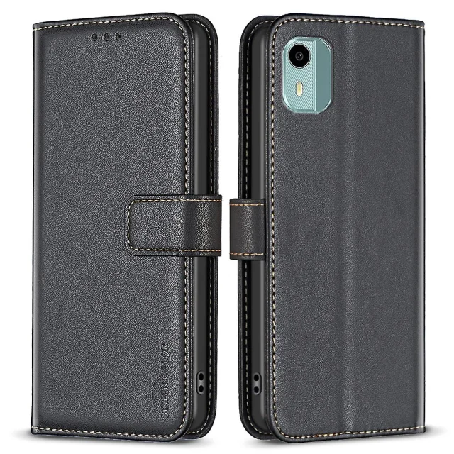 BINFEN COLOR BF17 Za Nokia C12 4G/C12 Pro/C12 Plus stojalo za pametni telefon PU usnje+TPU ovitek za denarnico