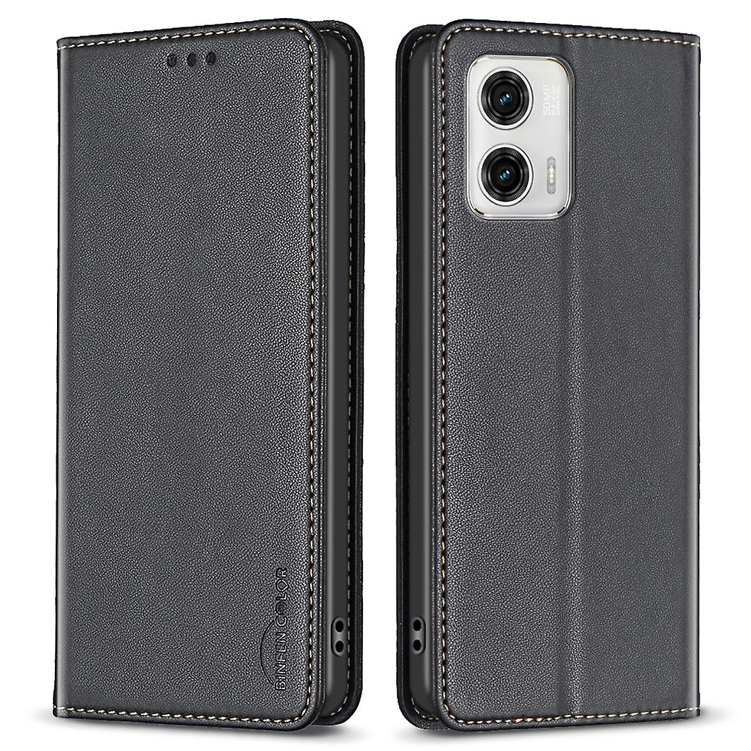 BINFEN COLOR BF18 PU usnjen ovitek za Motorola Moto G73 5G stojalo z režo za kartice, magnetna torbica za telefon