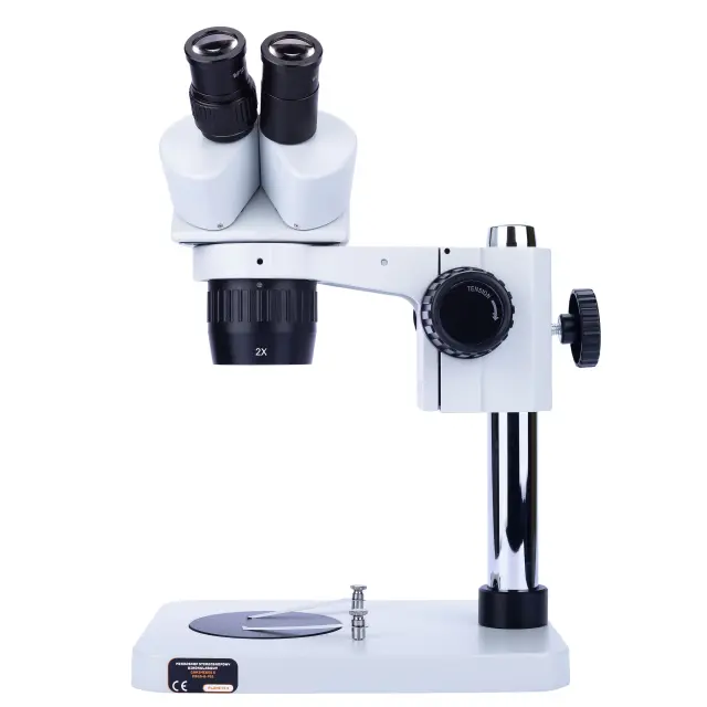 ✔️ Steber, ki podpira celotno konstrukcijo: predstavlja trdno oporo za glavo mikroskopa in zagotavlja njeno stabilnost.