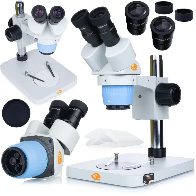 Rosfix Vela S Blue MSVSB-B-PS1 Stereoskopski Mikroskop – 20/40x Zoom, Glava 360°, WF10x/20 | Za Elektroniko in Nakit