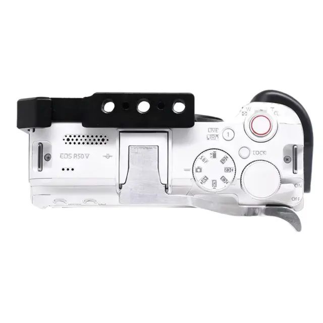 Secure Hold: Prosimo, upoštevajte: to niso originalni deli. This aluminum thumb grip provides a firm and comfortable hold for photographers using Canon EOS R50V compatible cameras. It improves handling during handheld and vertical shooting, reduces hand fatigue, and increases stability. Ideal for travel, event, and street photographers who need reliable control for quick framing and steady shots, the ergonomic design enhances shutter control and confidence when composing fast-moving scenes or working long sessions.