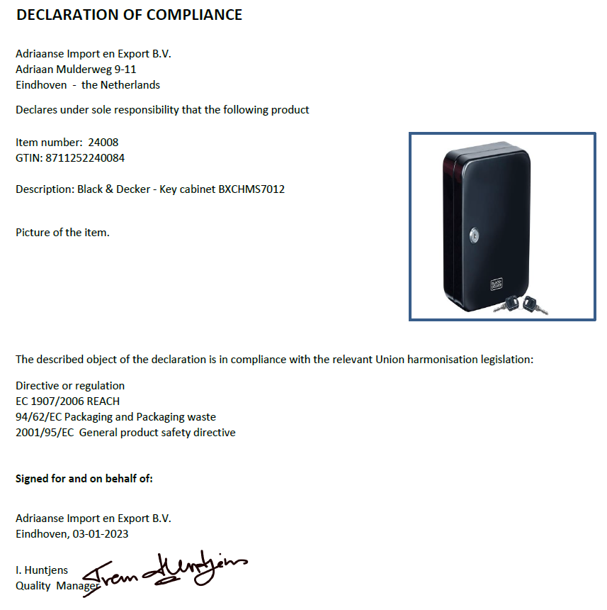 Gospodarski subjekt s sedežem v EU, ki zagotavlja skladnost izdelka z zahtevanimi predpisi.