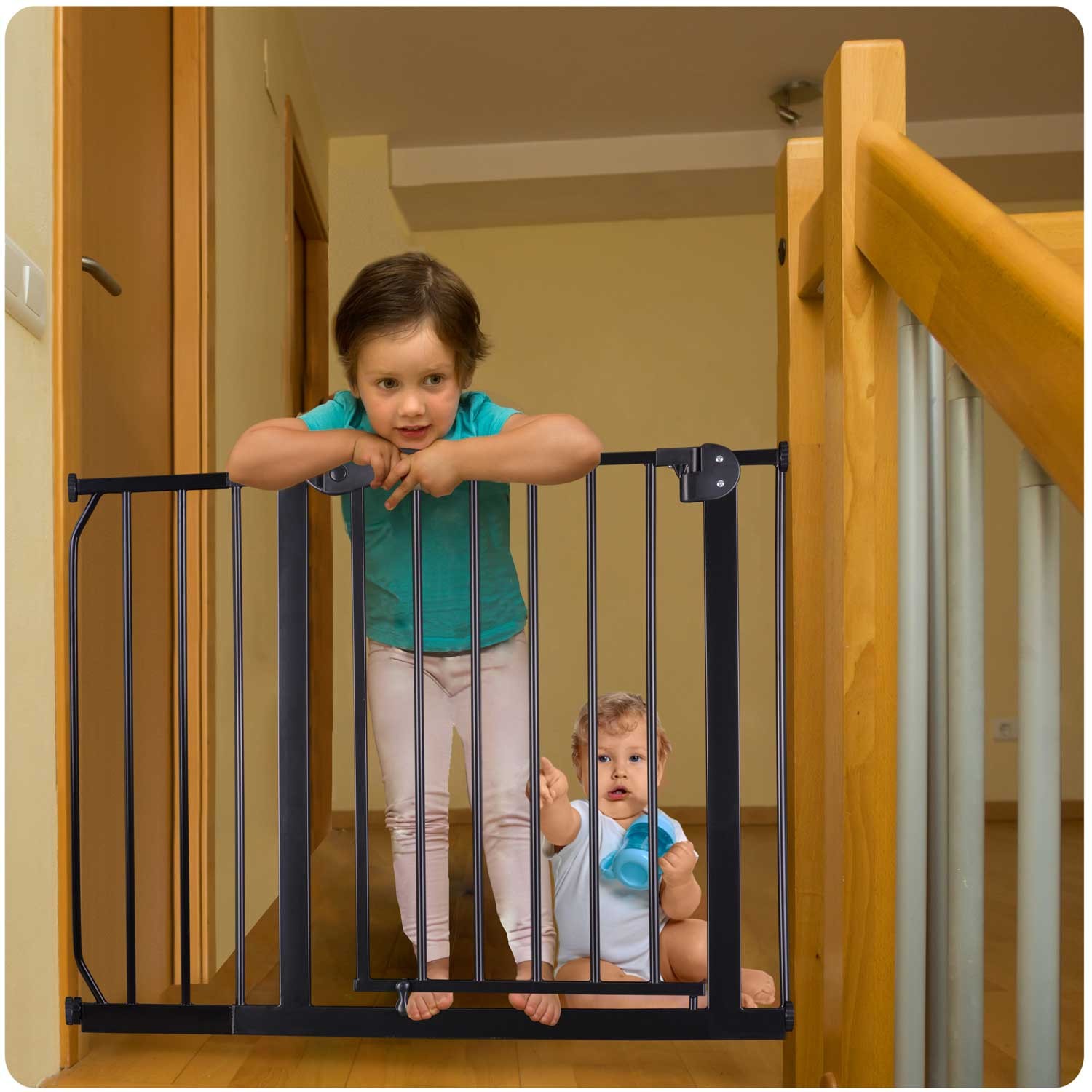Black Steel Nukido 718300 Child Safety Gate Barrier - Adjustable and Easy to Install