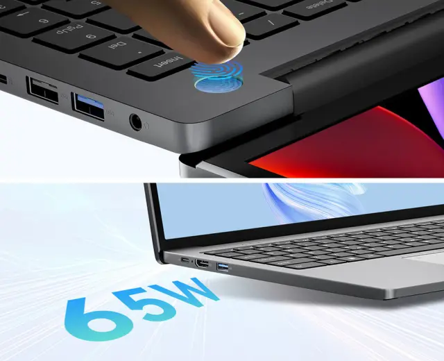 Acebook 12 vam s pomočjo 57Wh polnilne baterije omogoča, da ga uporabljate skozi celoten dan, opravljate pogovore, poslušate glasbo, igrate igrice ali brskate po spletu. Notesnik podpira tudi 65W hitro polnjenje.