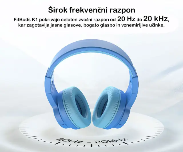 FitBuds K1 pokrivajo celoten zvočni razpon od 20 Hz do 20 kHz, kar zagotavlja jasne glasove, bogato glasbo in vznemirljive učinke. Otroci lahko uživajo v zgodbah, pesmih in igrah v živahnem, poglobljenem zvoku.