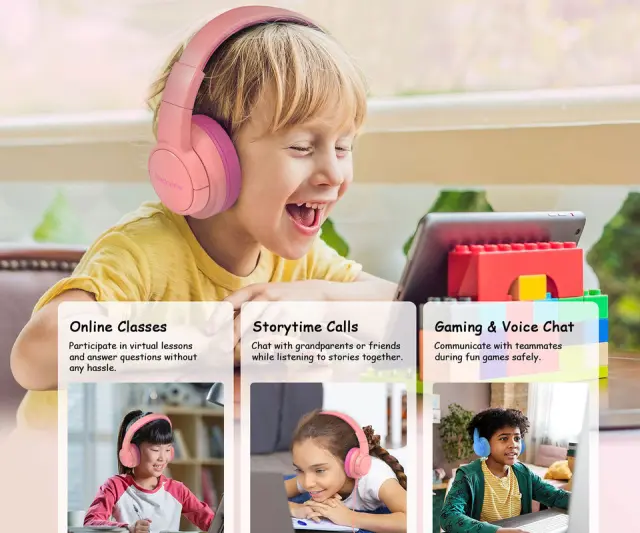 Slušalke ustvarjajo zabavno in poglobljeno zvočno izkušnjo, ki je idealna za poslušanje glasbe, pravljic, izobraževalnih vsebin ali igranje iger – kadar koli in kjer koli. Otroci se tako lažje potopijo v svet zvoka, starši pa so lahko mirni glede kakovosti in udobja poslušanja.