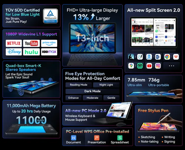 Popravljen artikel - Tablični računalnik BLACKVIEW MEGA 8, 33,02 cm (13"), AI, 4G LTE, 12 GB RAM, 512 GB ROM, IPS FHD+, siv (Space Gray), z dodatki