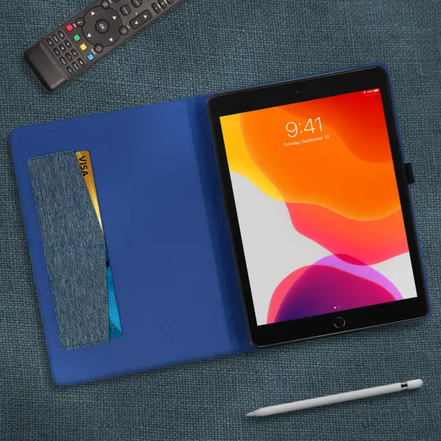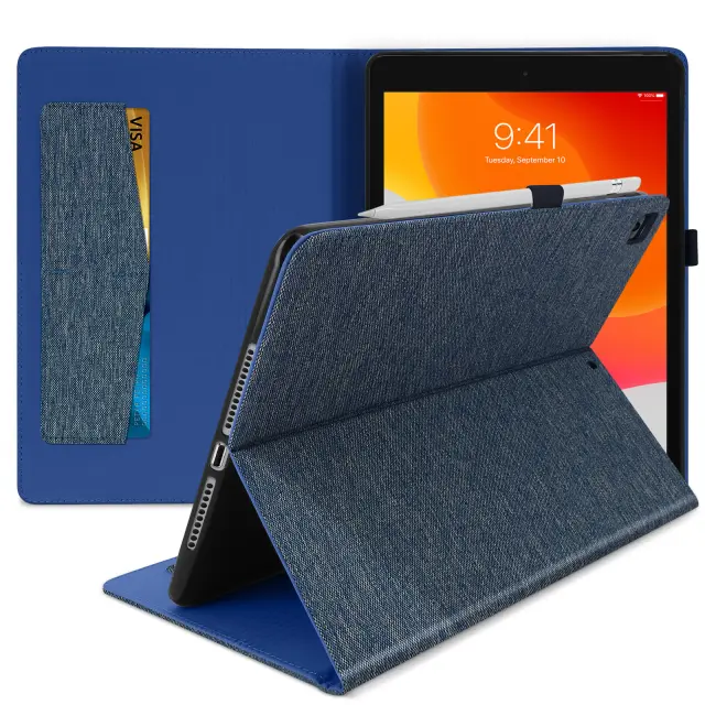 Blagovna torbica za iPad 9 2021, iPad 8 2020 in iPad 7 2019 z držalom za kartice in držalom za video, modna kolekcija - modra