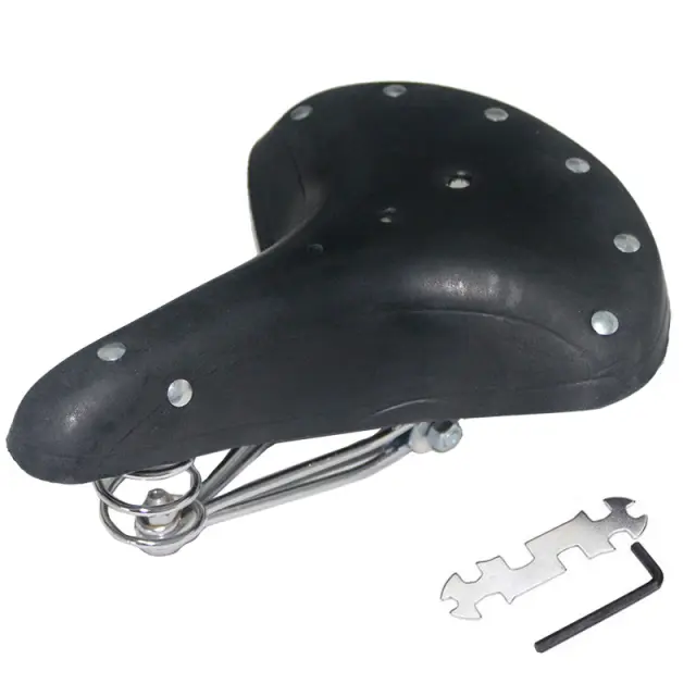 Široka površina je odporna na obrabo in praske, učinkovito razteza stične površine med zadnjico in sedežno blazino. To kolesarsko sedlo v starinskem slogu je narejeno iz debelega govejega usnja.