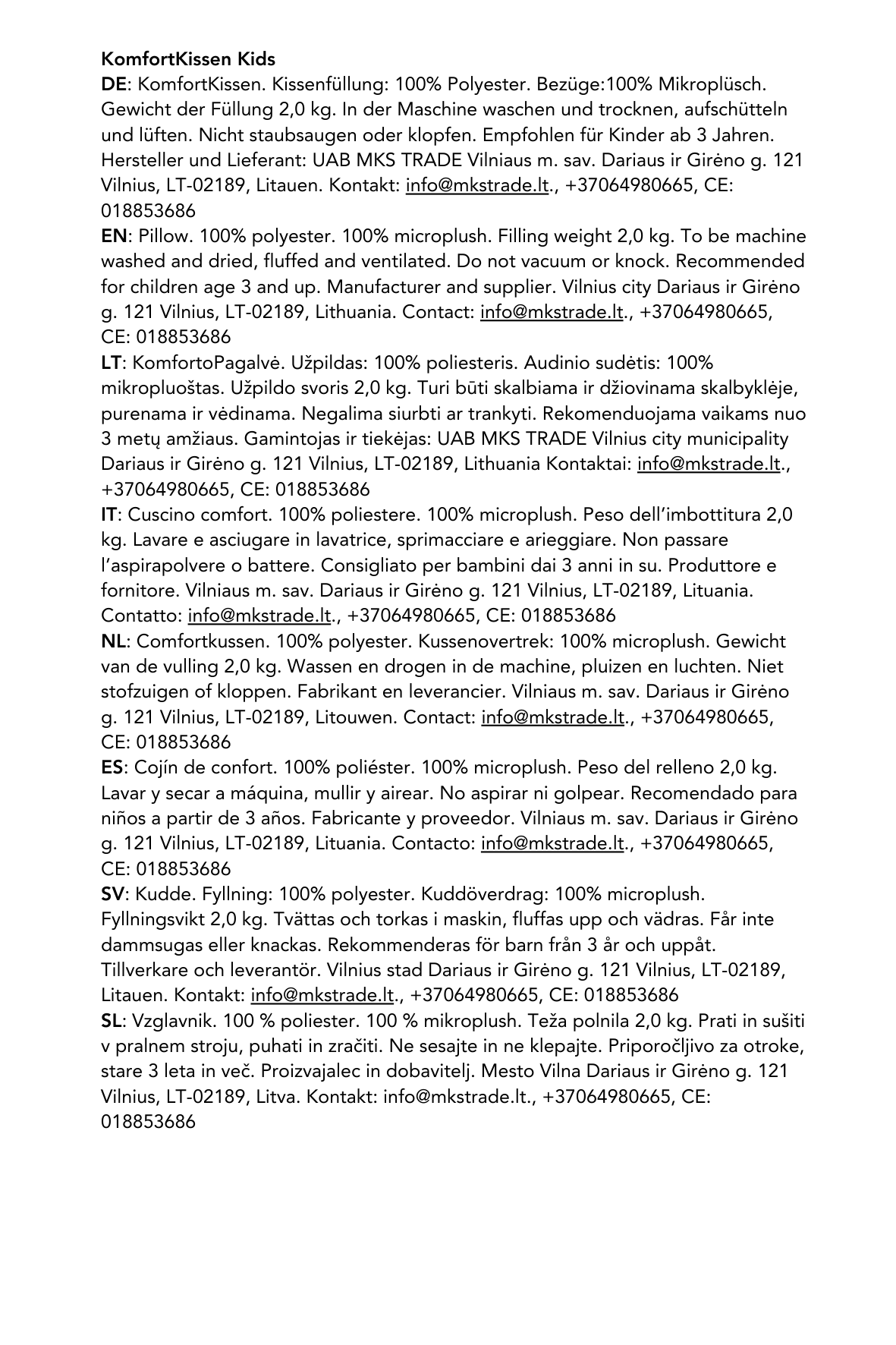 Podatki o proizvajalcu vključujejo informacije (naziv, naslov, državo in elektronski naslov) povezane s proizvajalcem izdelka.