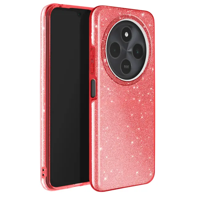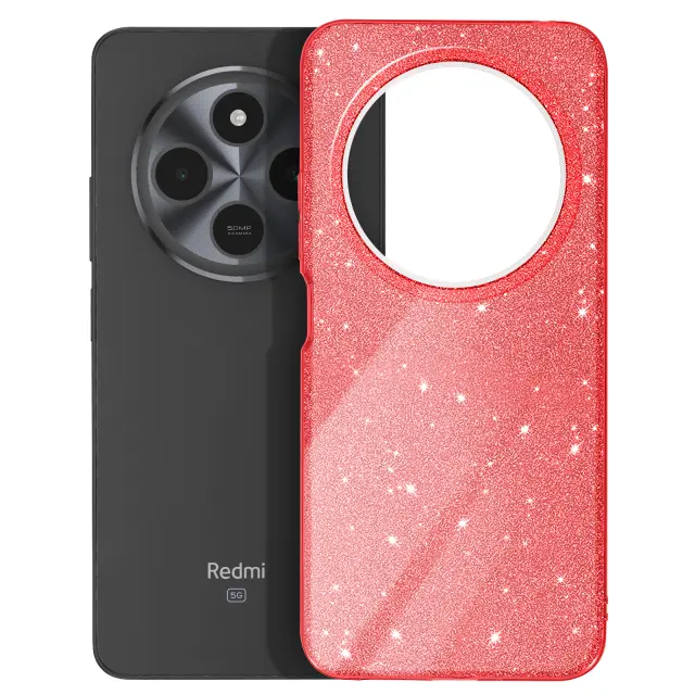 Bleščeča lupina za Xiaomi Redmi 14C Odporen na udarce Glitter, Rdeča