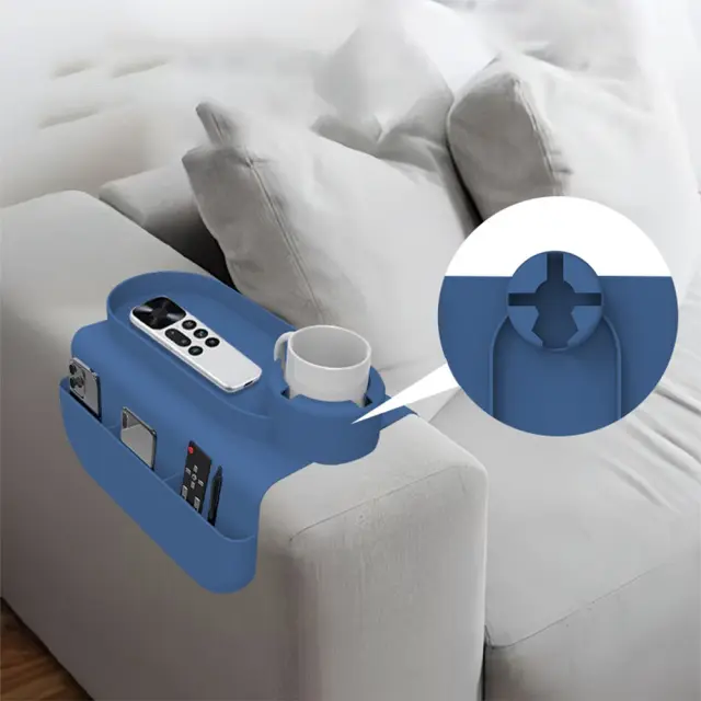 Blue Silikonski Pladenj za Držalo za Skodelico na Naslonjalu Kavča - Odporen na Razlitje