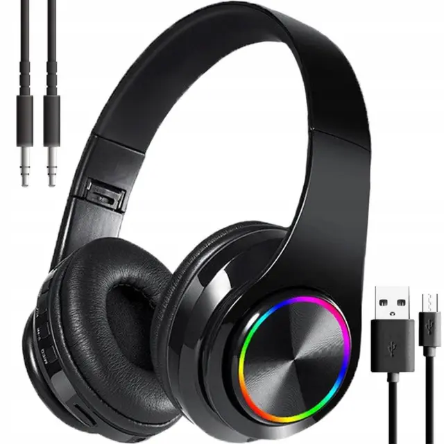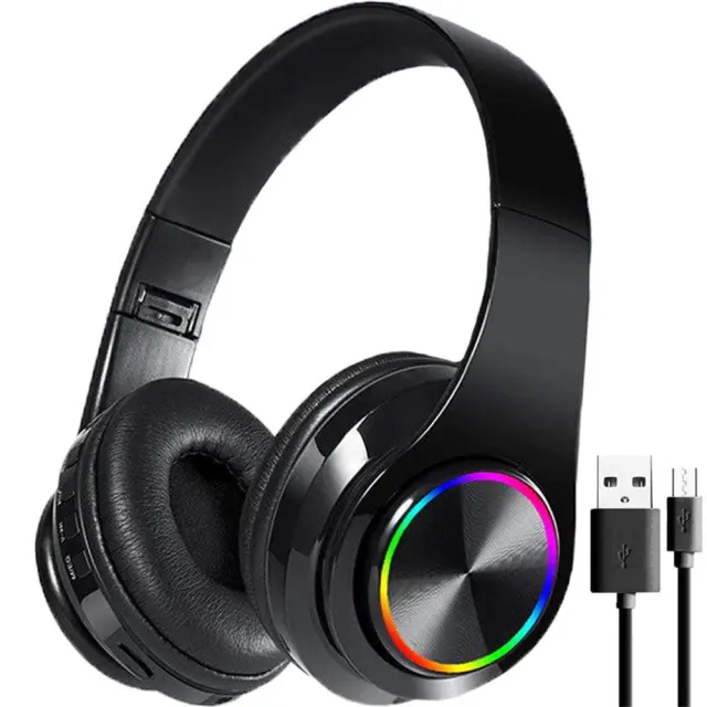 Bluetooth 5.0 brezžične LED RGB igralne slušalke + mikrofon črne