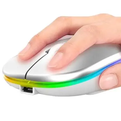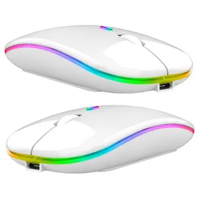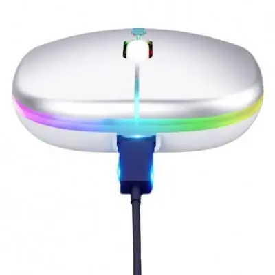 Brezžična optična miška z RGB LED osvetlitvijo. Sodoben dizajn miške in visoka ergonomija zagotavljata visoko udobje uporabe. Napaja se z vgrajeno polnilno baterijo (polni se s priloženim kablom). Ne potrebuje dodatnih gonilnikov (deluje takoj po priključitvi oddajnika na vrata USB ali prek Bluetootha). Miška ima možnost spreminjanja ločljivosti DPI z namenskim gumbom.