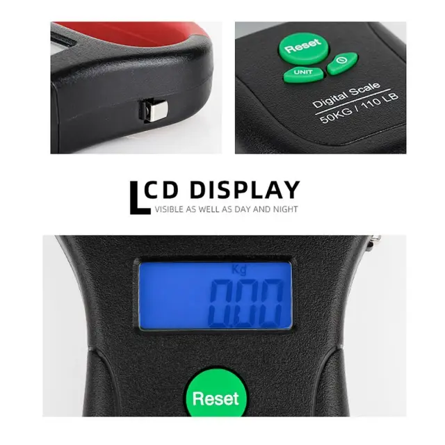 Uporabniku prijazen dizajn: Digitalna tehtnica za prtljago se ponaša z jasnim LCD zaslonom z modro osvetlitvijo ozadja za enostavno branje v vseh svetlobnih pogojih. Funkcije vključujejo tariranje, zaklepanje, ničlo in samodejni izklop, kar zagotavlja natančno in učinkovito uporabo. Indikatorji nizke baterije in preobremenitve (O_Ld) zagotavljajo dodatno udobje in preprečujejo poškodbe. Ta tehtnica, ki jo napajata 2x AAA bateriji, je zasnovana za enostavno uporabo in zanesljivost, zaradi česar je nepogrešljiv sopotnik za vse, ki želijo poenostaviti postopek pakiranja in se izogniti nepričakovanim stroškom ali težavam.