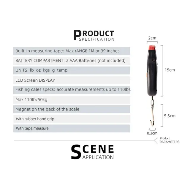 Integrirana merilna orodja: Ta tehtnica za prtljago ima vgrajen 1-metrski merilni trak in senzor temperature, kar zagotavlja dodatno uporabnost za popotnike. Merilni trak je kot nalašč za zagotavljanje, da vaša prtljaga ustreza omejitvam velikosti letalske družbe, medtem ko senzor temperature prikazuje temperaturo okolice v stopinjah Celzija. Te funkcije so neprecenljive za popotnike, ki morajo hitro oceniti dimenzije prtljage in okoljske pogoje, zaradi česar je vsestransko orodje za vsako potovanje. Prav tako je odličen za preverjanje velikosti ribiškega ulova med tekmovanji.