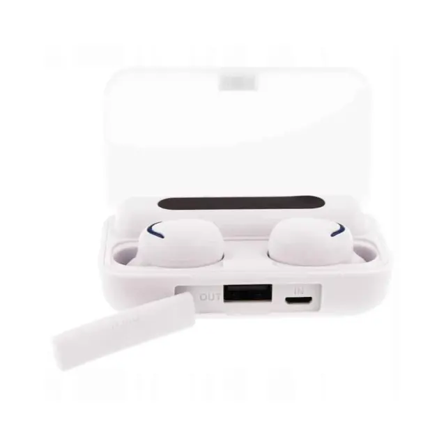 V kompletu je powerbank polnilna postaja s kapaciteto do 1200 mAh, ki podaljša možni čas uporabe slušalk in s tem poveča njihovo funkcionalnost.