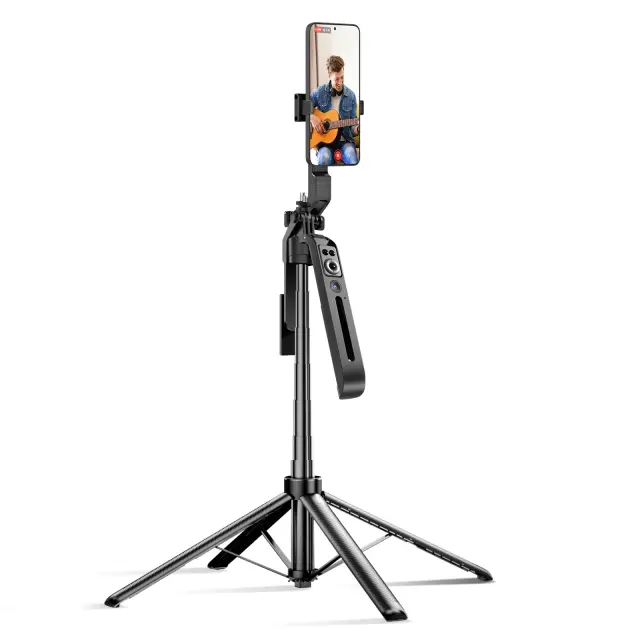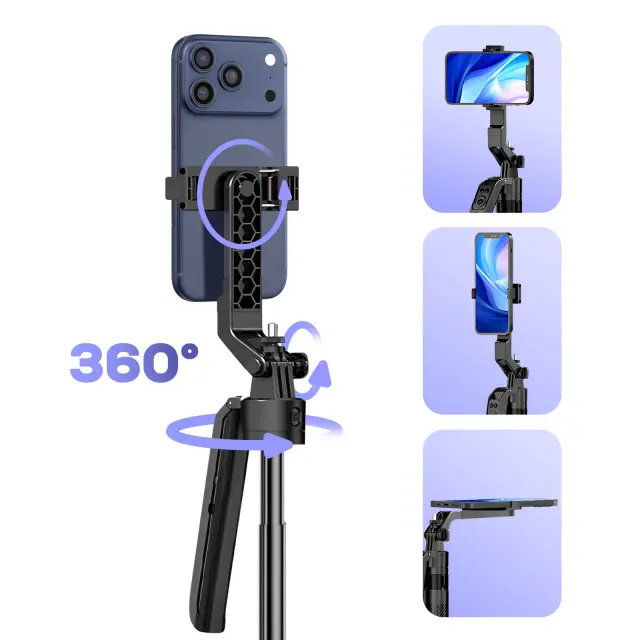 Samodejno obračanje za 360° s sledenjem obrazu z umetno inteligenco, ki vas med snemanjem ohranja v središču. Vgrajen daljinski upravljalnik Bluetooth za enostavno daljinsko sprožanje. Nastavljiva višina do 1,8 m za selfije, vloge, življenja ali skupinske fotografije. Združljiv s pametnimi telefoni in lahkimi fotoaparati za večjo vsestranskost.