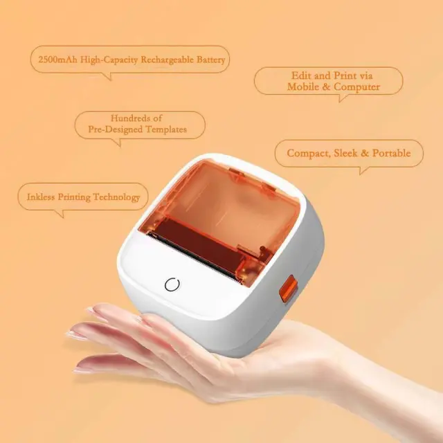 Prenosljivost in priročnost: Ta mini Bluetooth termični tiskalnik nalepk je zasnovan za vrhunsko prenosljivost. Njegova kompaktna velikost (9cm x 9.8cm x 4.8cm) vam omogoča, da ga enostavno prenašate v torbi ali žepu, zaradi česar je popoln za potrebe označevanja na poti. Ne glede na to, ali organizirate svoj dom, upravljate inventar za svoje majhno podjetje ali ustvarjate cenovne oznake na tržnici, ta prenosni tiskalnik nalepk ponuja neprimerljivo udobje. Brezžična povezljivost Bluetooth odpravlja potrebo po okornih kablih, kar vam omogoča tiskanje nalepk neposredno iz pametnega telefona ali tabličnega računalnika. Izkusite svobodo tiskanja nalepk kadarkoli in kjerkoli s tem kompaktnim in učinkovitim termičnim tiskalnikom nalepk.