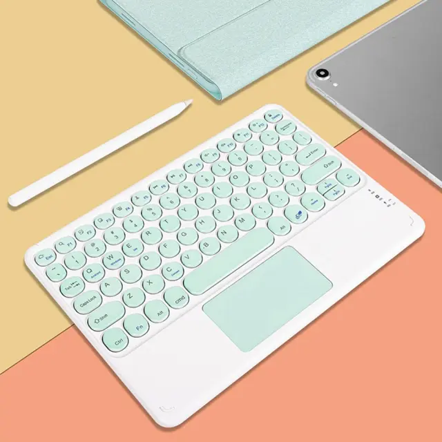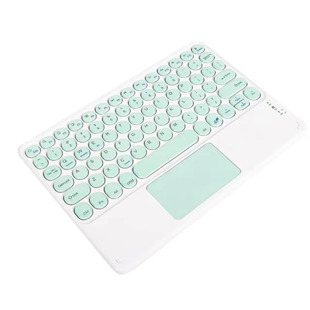 Integriran nadzor sledilne ploščice: Ta Bluetooth tipkovnica je opremljena z integrirano sledilno ploščico, ki ponuja natančen in intuitiven nadzor kurzorja. Sledilna ploščica podpira poteze z več prsti, kar vam omogoča enostavno krmarjenje po spletnih straneh, pomikanje po dokumentih in enostavno izvajanje drugih opravil. Sledilna ploščica odpravlja potrebo po ločeni miški, zaradi česar je idealna za uporabo v tesnih prostorih ali na poti. Gladka površina sledilne ploščice zagotavlja natančno sledenje in odzivnost, kar zagotavlja brezhibno uporabniško izkušnjo. Ne glede na to, ali urejate fotografije, ustvarjate predstavitve ali preprosto brskate po spletu, bo integrirana sledilna ploščica izboljšala vašo produktivnost in udobje.
