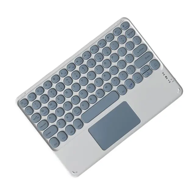Integriran nadzor sledilne ploščice: Ta Bluetooth tipkovnica je opremljena z integrirano sledilno ploščico, ki ponuja natančen in intuitiven nadzor kurzorja. Sledilna ploščica podpira poteze z več prsti, kar vam omogoča enostavno krmarjenje po spletnih straneh, pomikanje po dokumentih in enostavno izvajanje drugih opravil. Sledilna ploščica odpravlja potrebo po ločeni miški, zaradi česar je idealna za uporabo v tesnih prostorih ali na poti. Gladka površina sledilne ploščice zagotavlja natančno sledenje in odzivnost, kar zagotavlja brezhibno uporabniško izkušnjo. Ne glede na to, ali urejate fotografije, ustvarjate predstavitve ali preprosto brskate po spletu, bo integrirana sledilna ploščica izboljšala vašo produktivnost in udobje.
