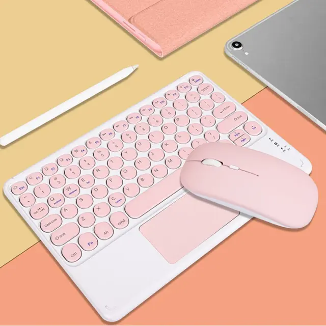 Bluetooth tipkovnica z okroglimi tipkami in sledilno ploščico + Bluetooth miška Pink