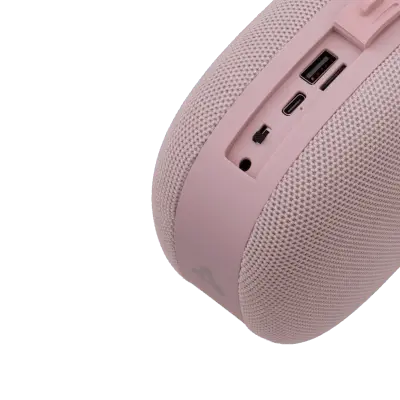 Vrsta zvočnika: Bluetooth zvočnik (BT 5.1) Izhodna moč (mW): 2 x 8W (RMS) Frekvenčno območje (Hz): 80 Hz - 20 kHz Razmerje signal/šum (dB): >=75dB +- 3dB Velikost zvočnika (mm): 2 x 66 mm Delovna napetost (V): 3,7 Material: ABS plastika + blago + silikon Barva: roza Vmesnik: USB 2.0 Baterija: 2400 mAh / 3,7V Domet (m): 10 Čas poslušanja glasbe (h): 3 - 4 Dimenzije zvočnika (mm): 145x80x126 Osvetlitev: Ne Teža (g): 676